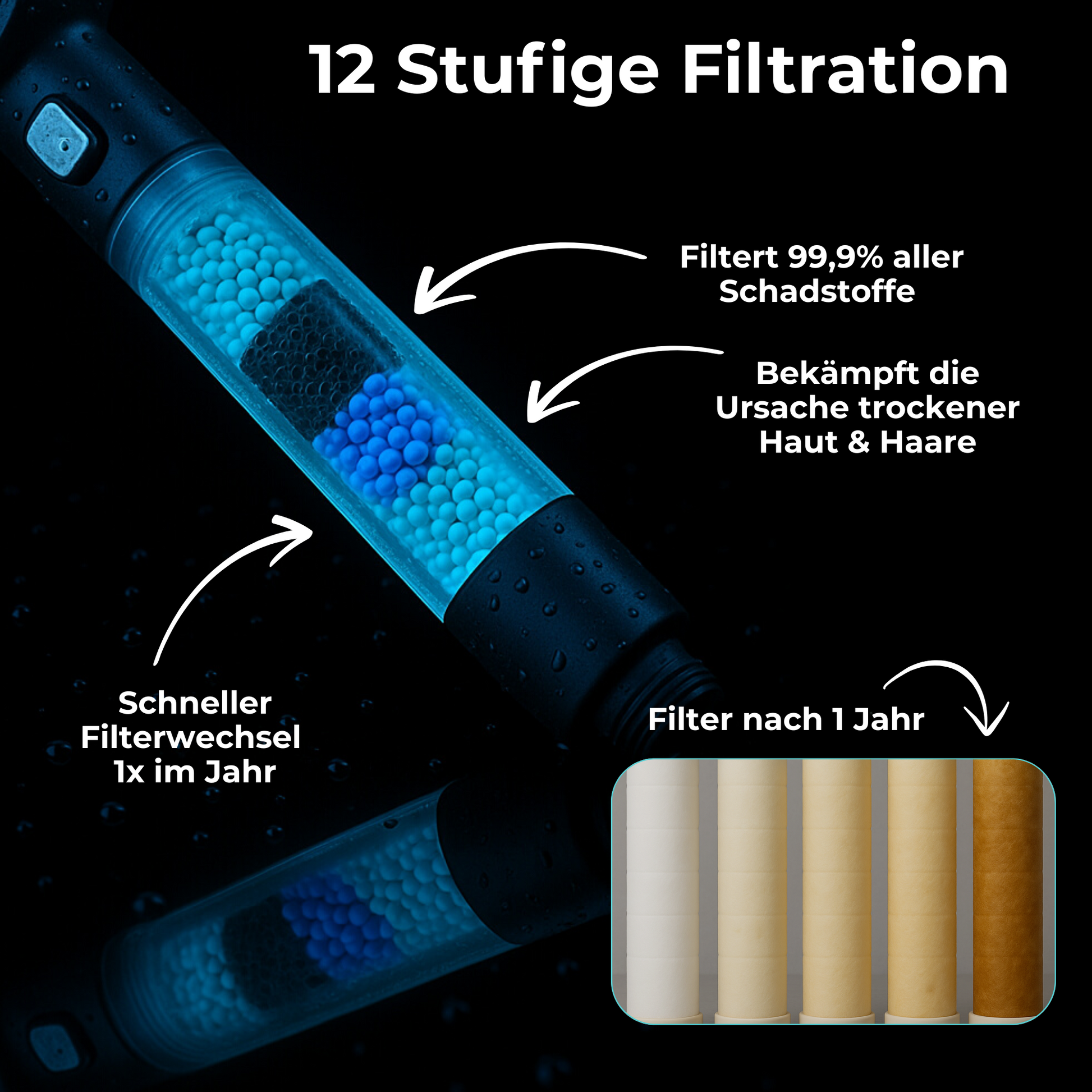 ✔ Gesünderes Haar – Durch die Reduktion von Kalk und Chlor fühlt sich das Haar geschmeidiger an und behält seinen natürlichen Glanz.